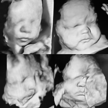 28+ weeks baby really starts to put the baby chunk on. You can start seeing all of their defined details such as their lips and nose. After 36 weeks, they tend to start running out of room and it becomes hard to see their face sometimes.
